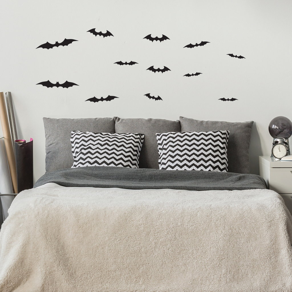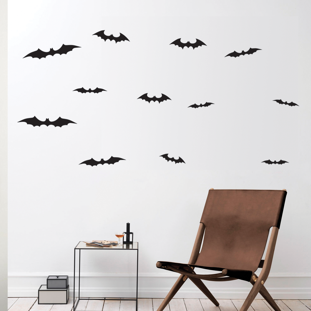 12 bats set - From 4.5 in to 9 in each - Spooky Black Halloween Wall Art Vinyl Decal Bats Sticker