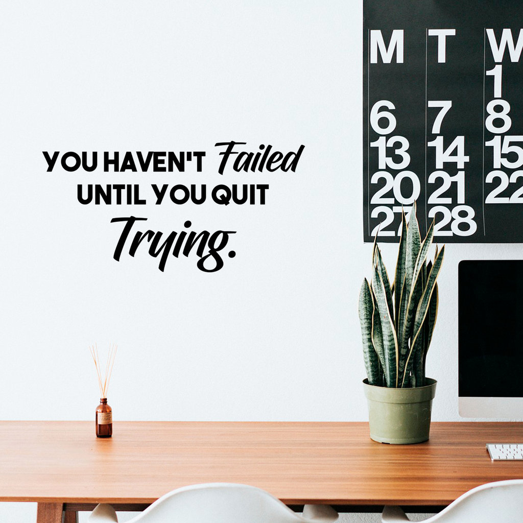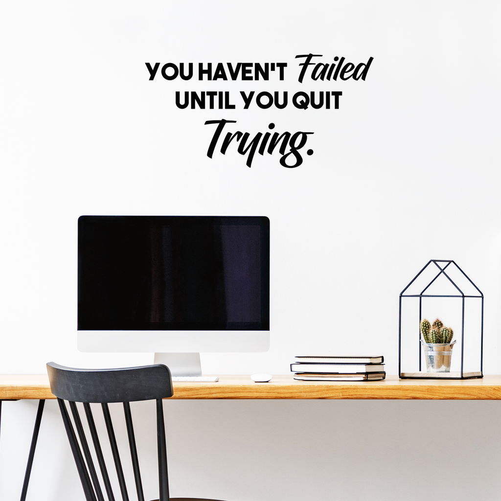 Wall Art Vinyl Decal - You Haven't Failed Until You Quit Trying - Inspirational Life Quote - 14" x 28" Home Decor Motivational Gym Fitness Work Office Sayings - Removable Sticker Decals 660078096284