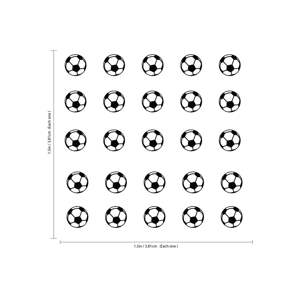 Pack of 25 Soccer Balls - Vinyl Wall Art Decals - 1.5" x 1.5" Each one - Kids Bedroom Sports Vinyl Wall Decal Stickers - Childrens Room Wall Decor for Boys and Girls