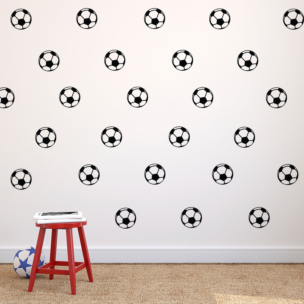 This cool Soccer Balls pattern wall art decal is whimsical and the perfect touch for both indoor and outdoor DIY home makeovers. This 25 pack of Vinyl Soccer Ball stickers are easy to stick to almost any smooth surface and really brings a room together adding the perfect amount of decoration. These vinyl sticker decals are perfect for your next DIY home project. Our modern vinyl stickers don't just brighten up the room but brighten up the day. Using the top of the line vinyl across all of our products allows us to be the leaders in quality and design.