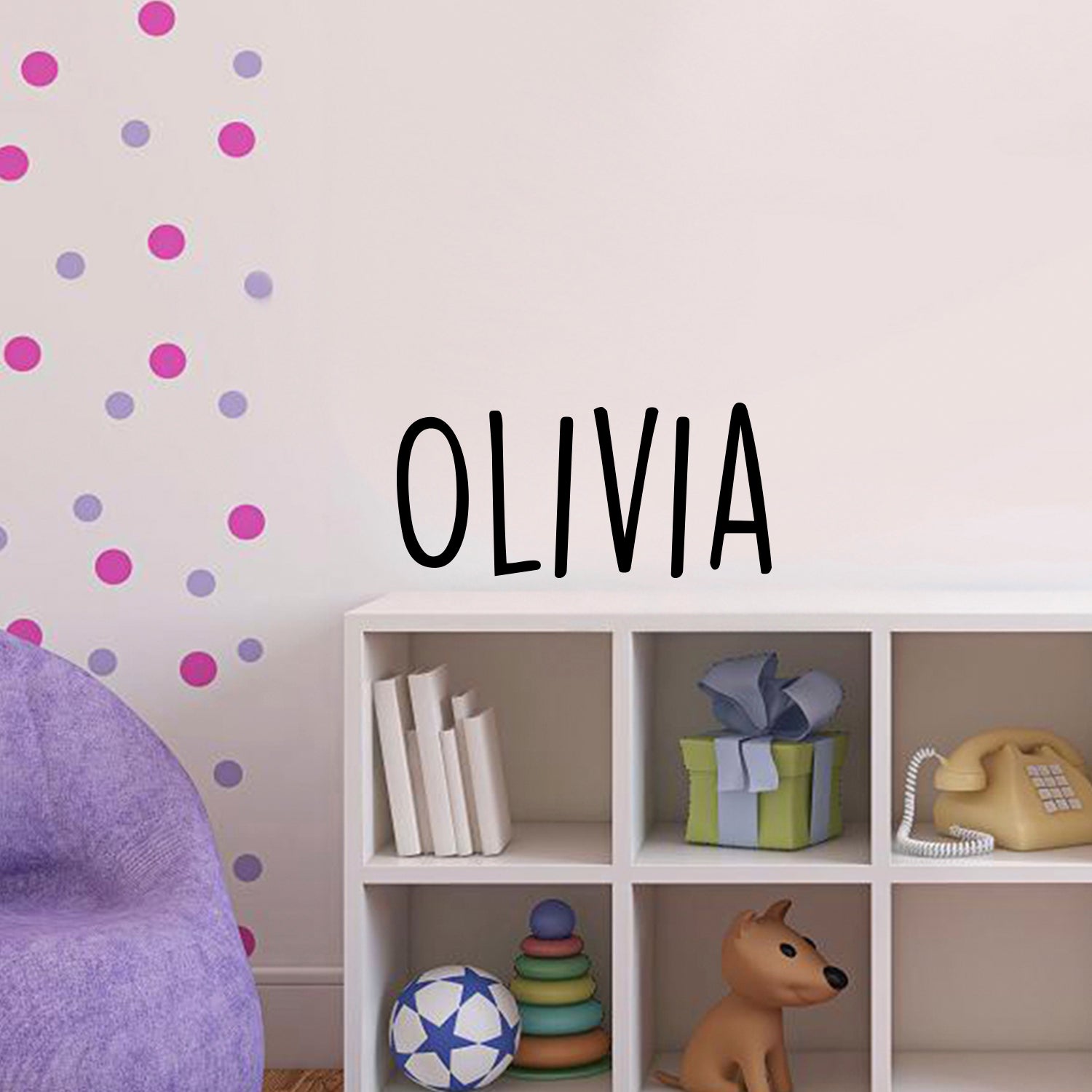 This personalized custom name "OLIVIA" wall art decal is cute, modern, and the perfect touch for both indoor and outdoor decoration. It's a vinyl sticker that is easy to put on almost any smooth surface and really brings a room together adding the perfect amount of decoration. This modern vinyl adhesive decoration gives personality to your child's personal space. Our trendy quotes don't just brighten up the room, but brighten up the day. Using top of the line vinyl across all of our production allows us to be the leaders in quality and design. Each vinyl decal quotes range in color bringing variety to you wherever you are.