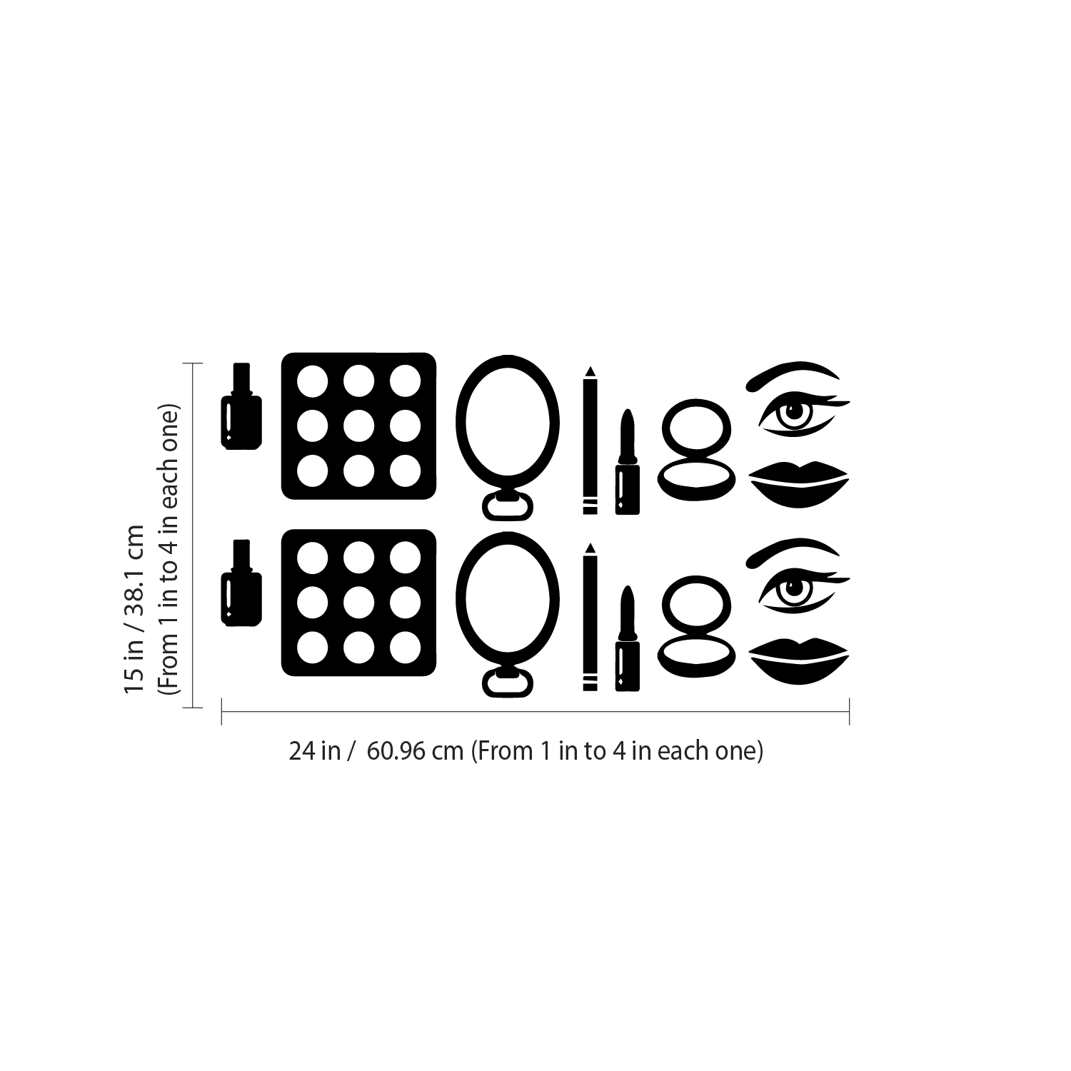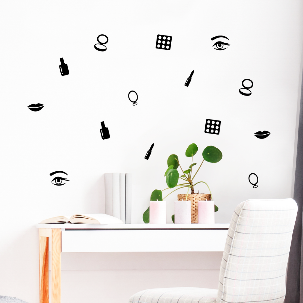 Makeup Set of 16 Vinyl Art Wall Decals - 1" to 4" Each - Vinyl Wall Stickers - Beauty Trend Vinyl Stickers - Bedroom Dorm Room Vinyl Stickers - Fashion Wall Art Vinyl Sticker Decor 660078099407