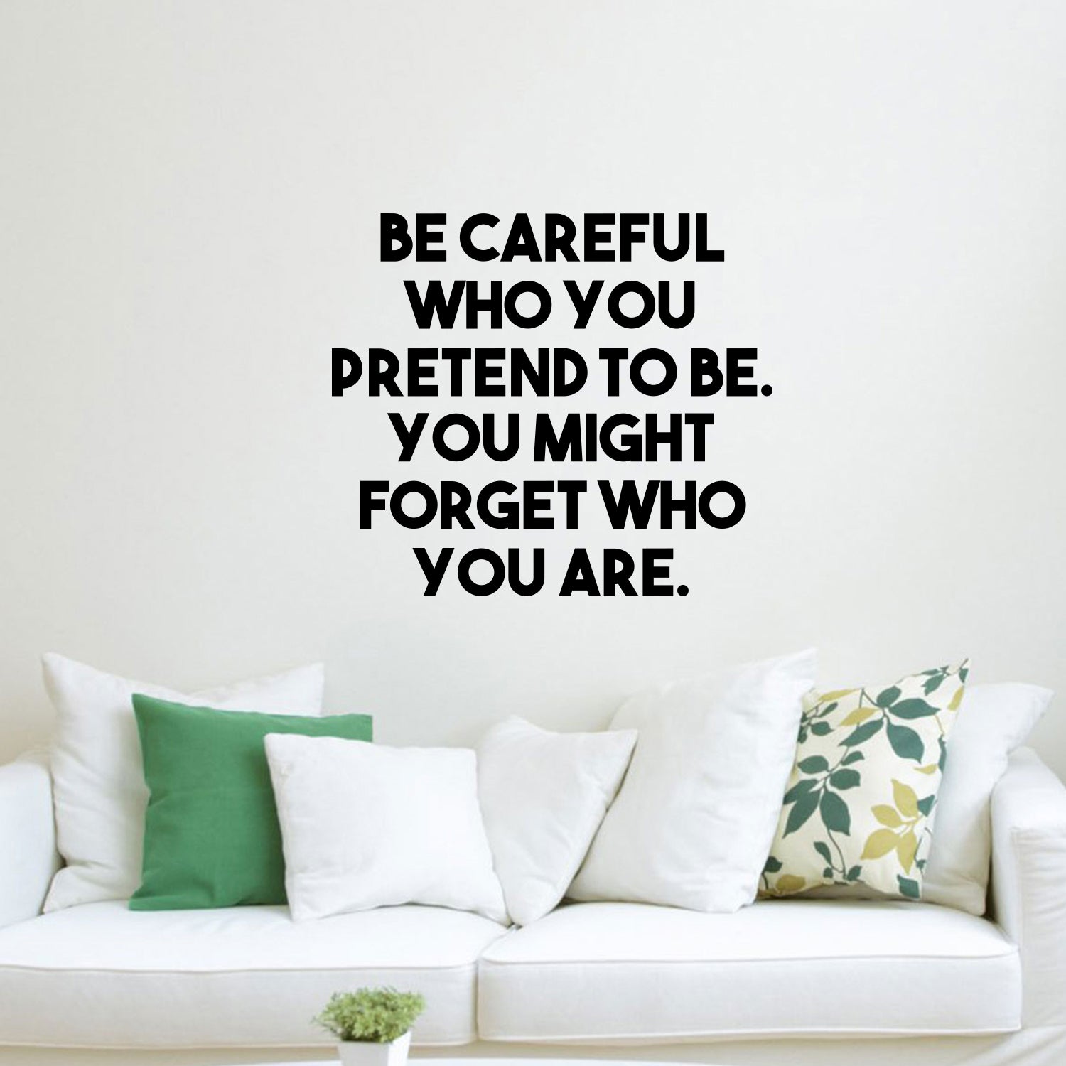 This uplifting "Be Careful Who You Pretend To Be. You Might Forget Who You Are." life quotes wall art decal is motivational and the perfect touch for both indoor and outdoor decoration. It's a vinyl sticker that is easy to put on almost any smooth surface and really brings a room together adding the perfect touch of decoration. This motivational vinyl decal quote uplifts people to remind them to be true to themselves, their talents and capabilities, who they are as an individual and to remember that everyone is meant to be unique. Our inspiring quotes don't just brighten up the room, but brighten up the day. Using top of the line vinyl across all of our production allows us to be the leaders in quality and design.