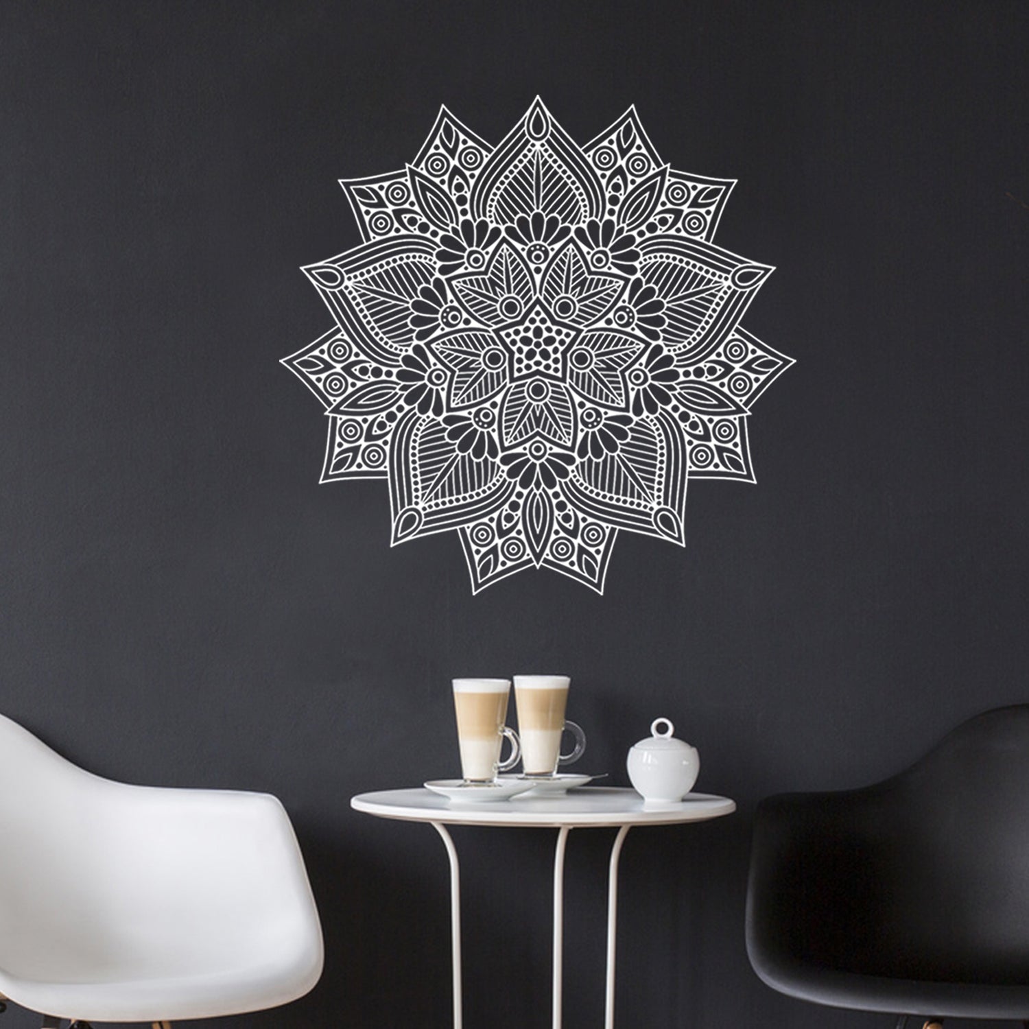 Vinyl Wall Art Decal - Hindu Mandala - 22" x 23" - Home Decor Apartment Workplace - Yoga Studio Namaste Meditation Mandala Bohemian Flower (22" x 23", White) 660078109786