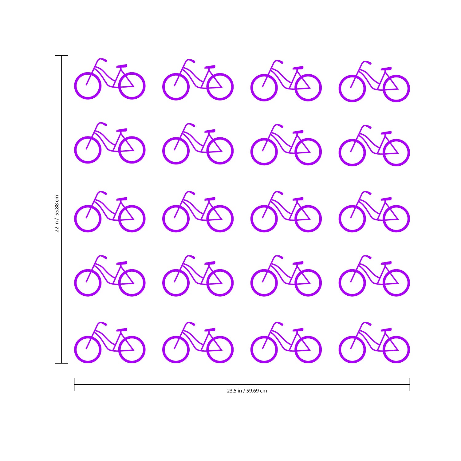 Set of 20 Vinyl Wall Art Decal - Bicycle Patterns - 3" x 5" Each - Stencil Adhesive Vinyl for Home Apartment Workplace Use - Cool Simple Shapes for Living Room Bedroom Decor (3" x 5" Each, Purple) 660078111772