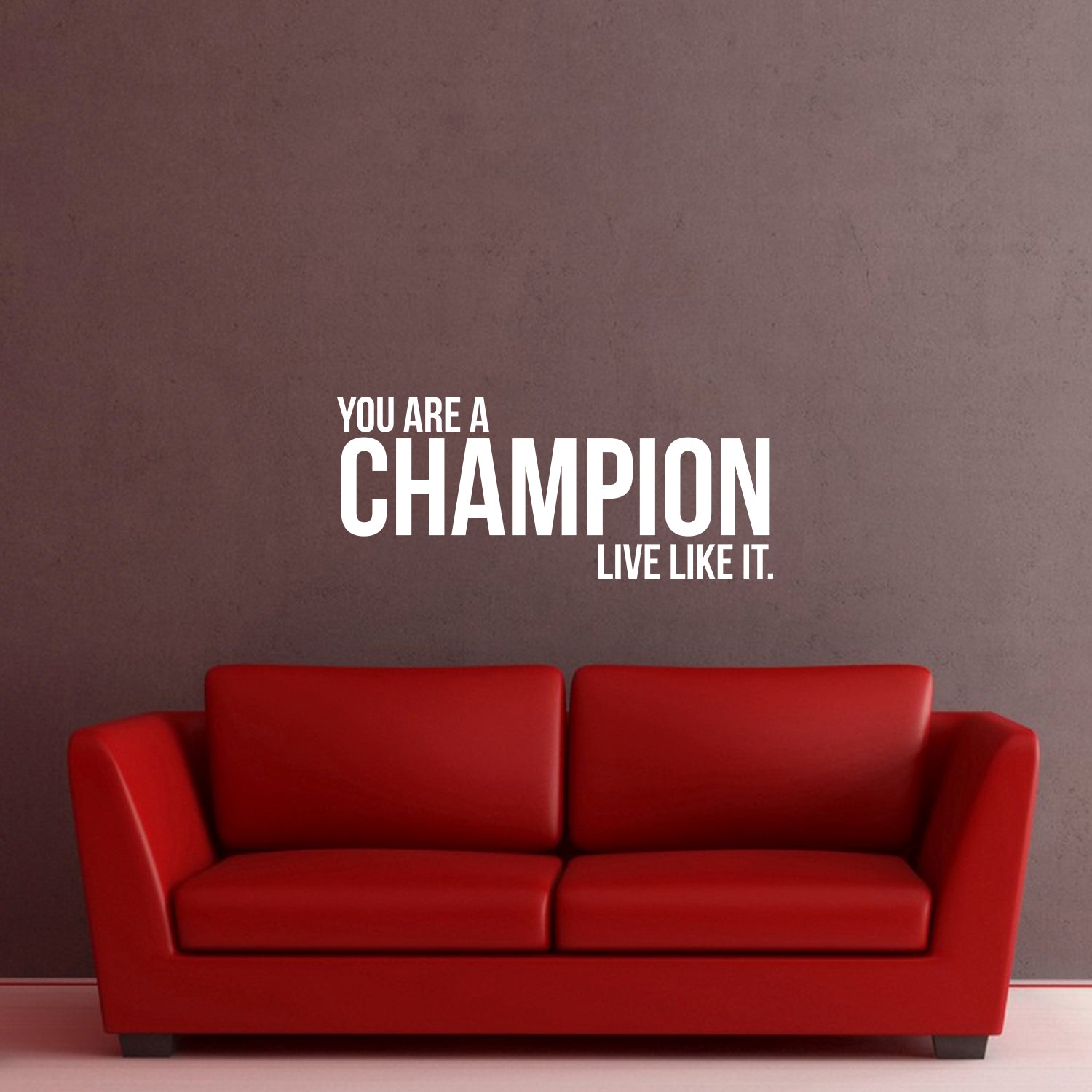 This motivating "You Are A Champion Live Like It" life quotes wall art decal is inspiring and the perfect touch for both indoor and outdoor decoration. It's a vinyl sticker that is easy to put on almost any smooth surface and really brings a room together adding the perfect touch of decoration. This motivational vinyl decal quote reminds people that they are special and to be courageous and determined in order to reach their goals. Our inspiring quotes don't just brighten up the room, but brighten up the day. Using top of the line vinyl across all of our production allows us to be the leaders in quality and design.