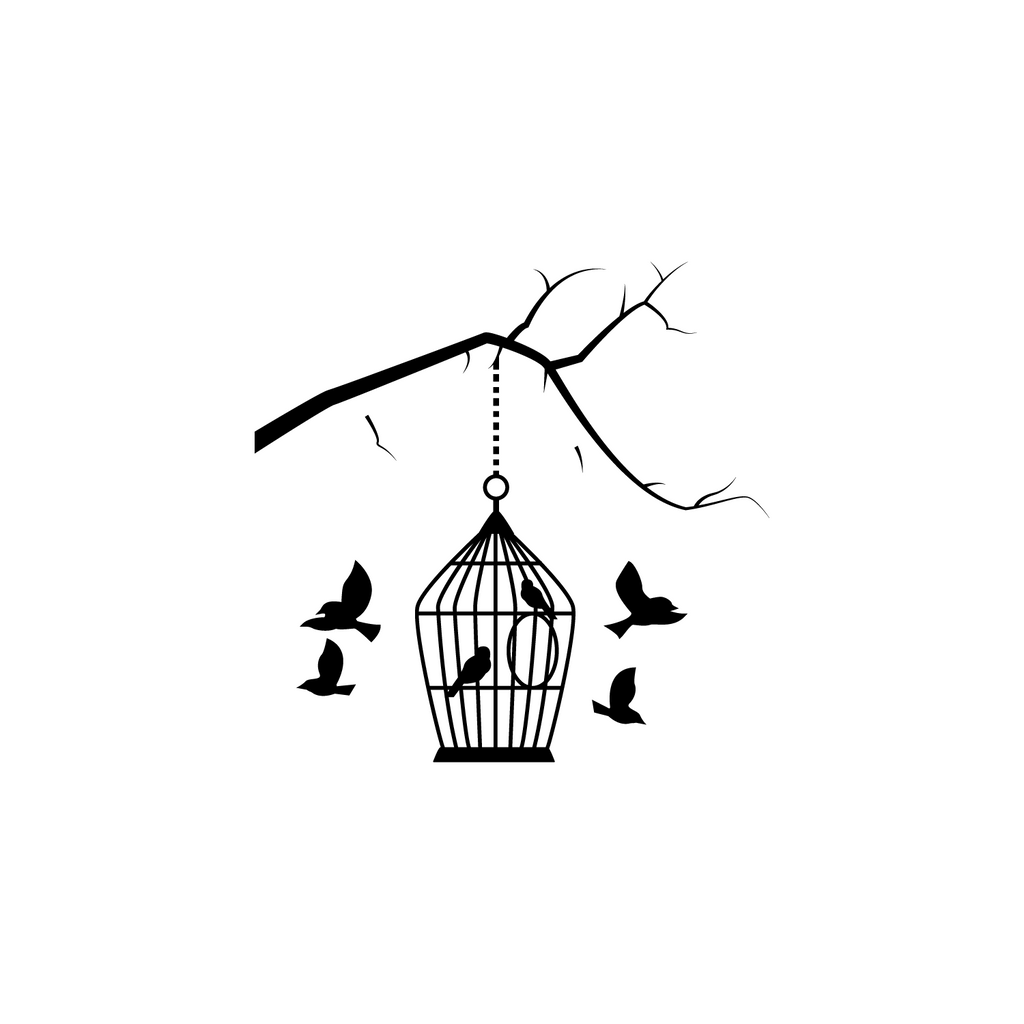 Tree Branch and Birdcage - 4.5" x 4.5" - Cute Animal Decor for Light Switch Window Mirror Luggage Car Bumper Laptop Computer Peel and Stick Skin Sticker Designs