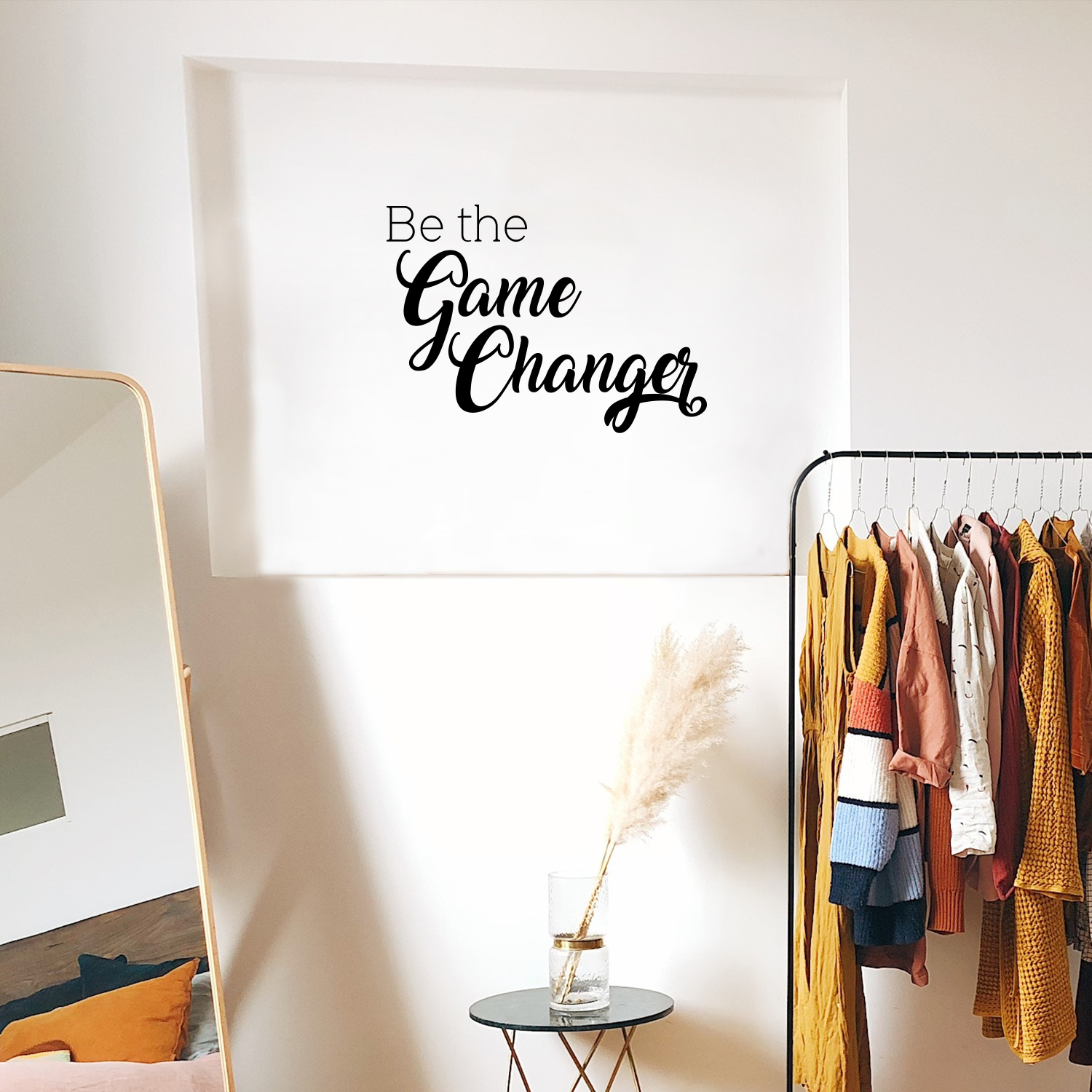 This motivating "Be The Game Changer" life quotes wall art decal is inspiring and the perfect touch for both indoor and outdoor decoration. It's a vinyl sticker that is easy to put on almost any smooth surface and really brings a room together adding the perfect touch of decoration. This motivational vinyl decal quote reminds people to embrace their uniqueness to achieve their goals. Our inspiring quotes don't just brighten up the room, but brighten up the day. Using top of the line vinyl across all of our production allows us to be the leaders in quality and design.