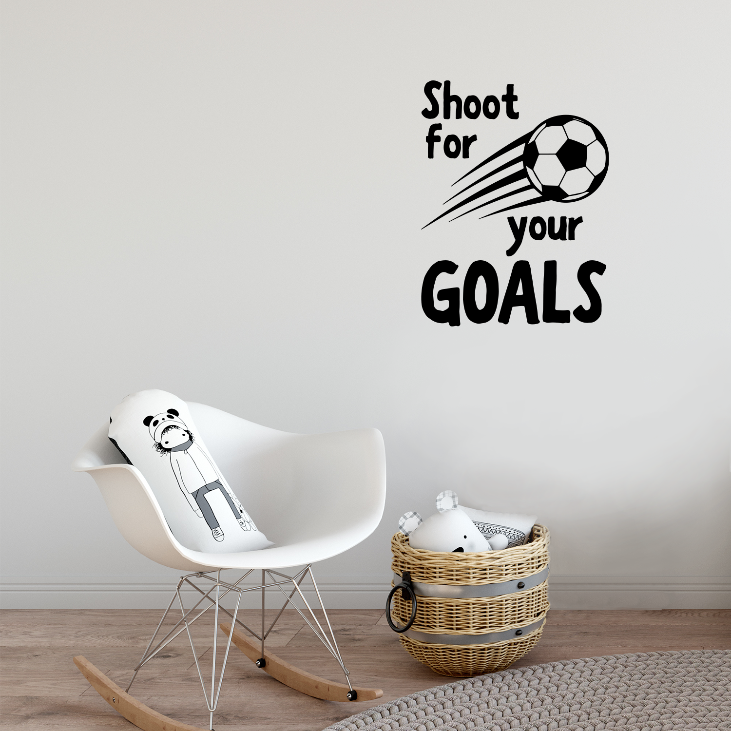 This "Shoot For Your Goals" with soccer ball wall art decal is motivational and the perfect touch for both indoor and outdoor decoration. It is a vinyl sticker that is easy to put onto almost any smooth surface and really brings a room together adding the perfect amount of decoration. This vinyl decal quote is great to put in a bedroom, living room, or playroom to inspire a child to do their best in anything they do. Our motivational quotes don't just brighten up the room, but brighten up the day. Using top of the line vinyl across all of our production allows us to be the leaders in quality and design.