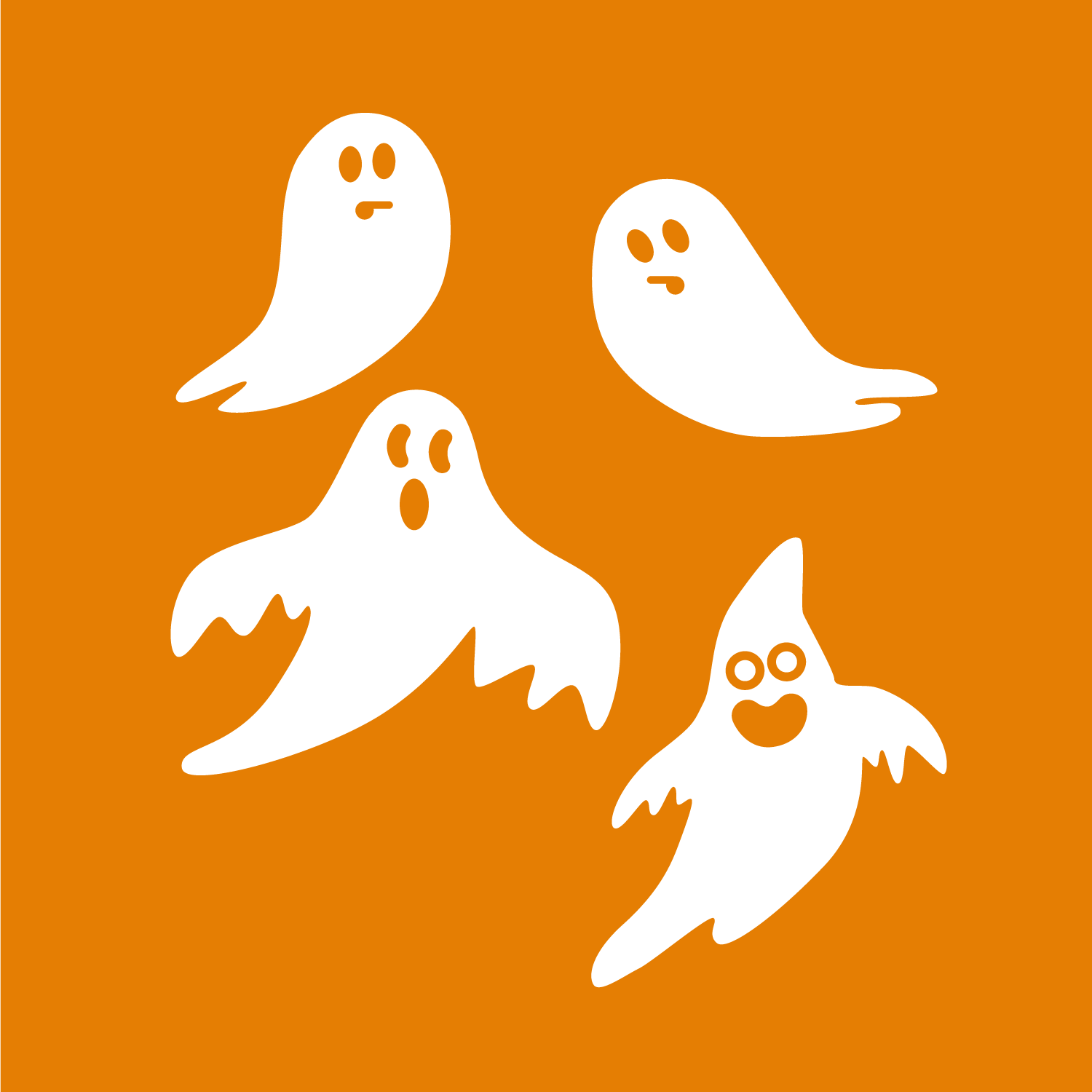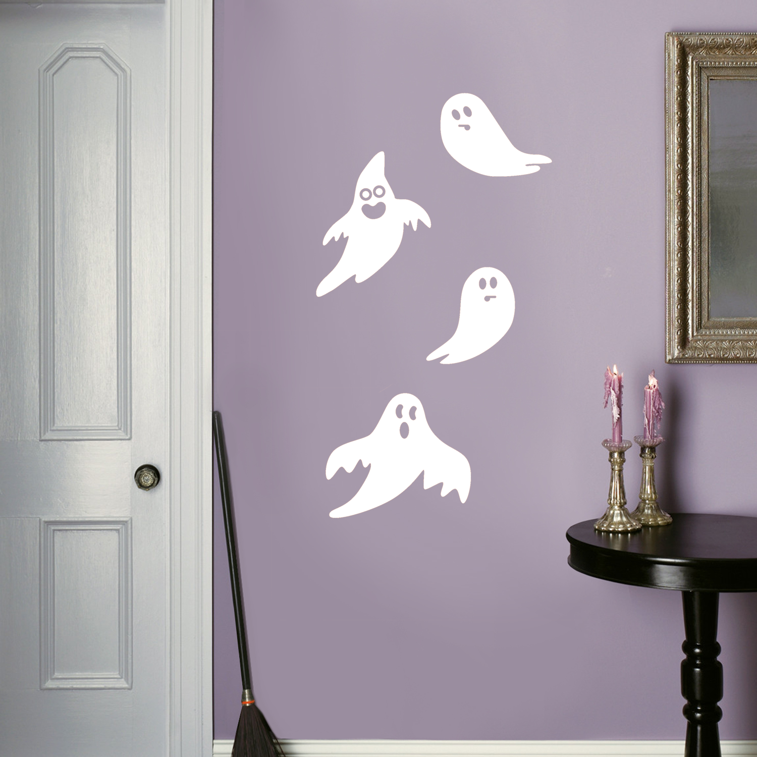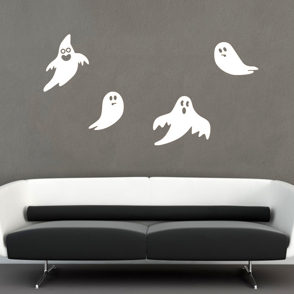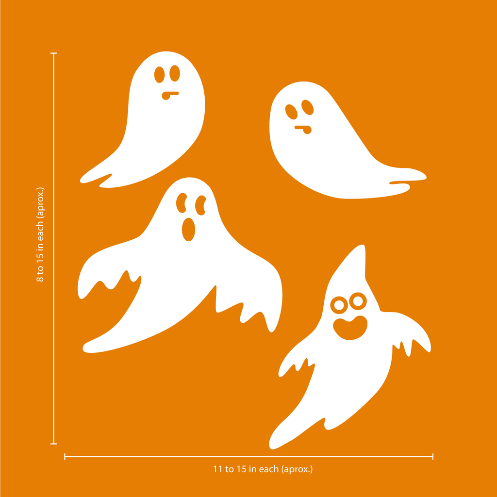 Set of 4 Vinyl Wall Art Decals - Ghosts - from 8" to 15" Each - Fun Spooky Halloween Seasonal Decoration Sticker - Kids Teens Adults Indoor Outdoor Wall Door Window Living Room Office Decor 660078118979