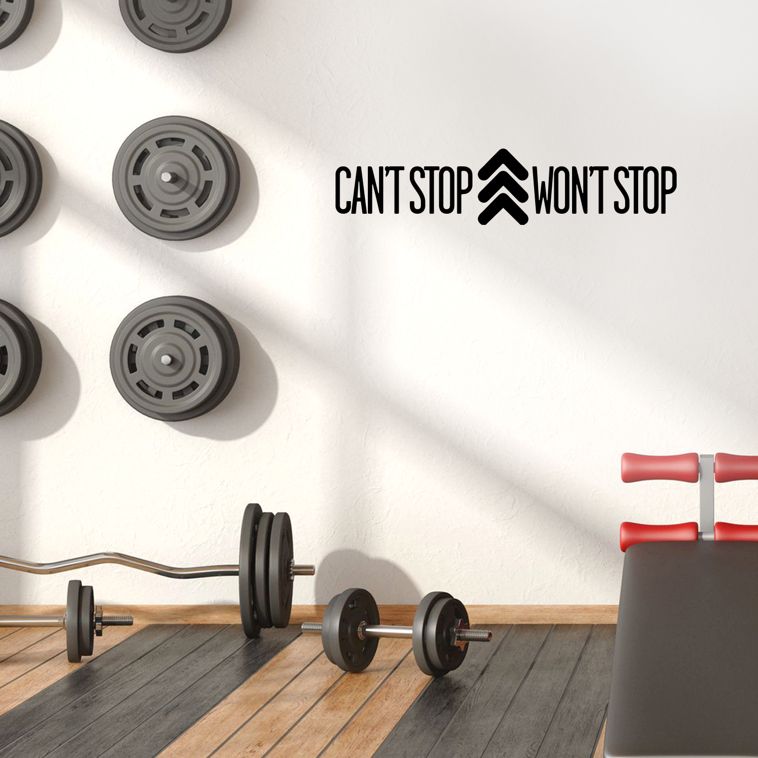 This motivating "Can't Stop Won't Stop" life quotes wall art decal is inspiring and the perfect touch for both indoor and outdoor decoration. It's a vinyl sticker that is easy to put on almost any smooth surface and really brings a room together adding the perfect touch of decoration. This vinyl decal quote motivates people to go beyond what they think their limits are and to achieve the lifestyle and healthy body they want. Our inspiring quotes don't just brighten up the room, but brighten up the day. Using top of the line vinyl across all of our production allows us to be the leaders in quality and design.