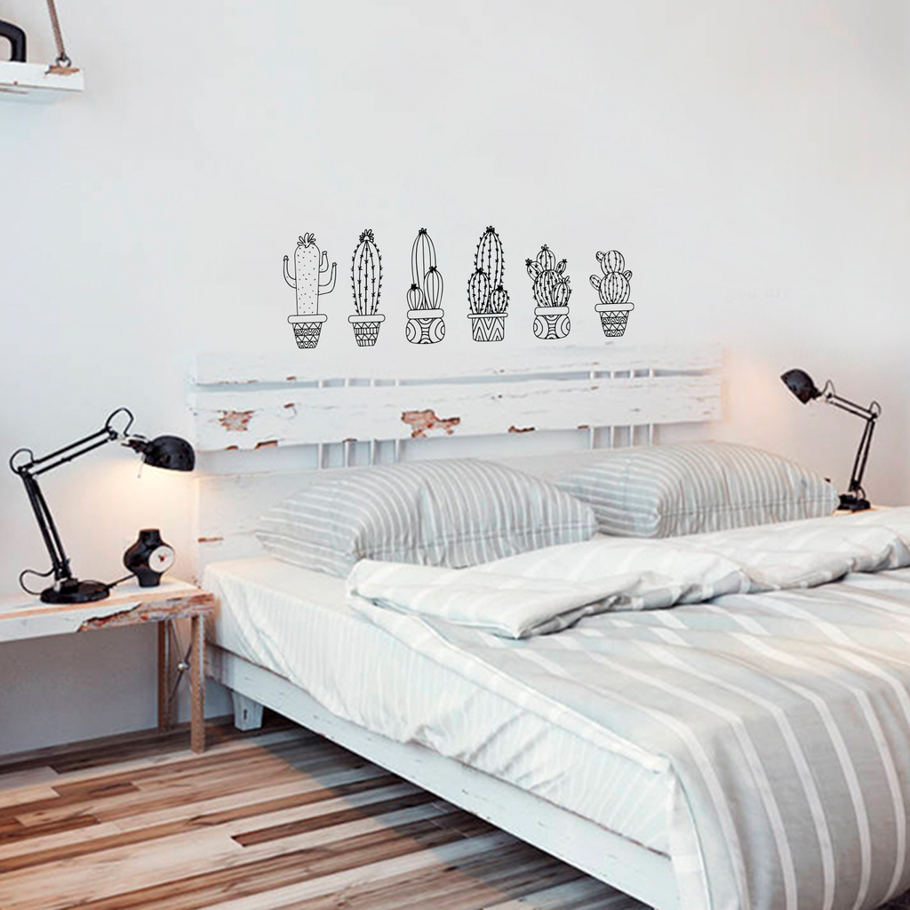 Set of 6 Vinyl Wall Art Decals - Cactus Plants - from 11" to 7" Each - Trendy Home Living Room Bedroom Decor - Modern Fun Teens Adults Apartment Work Office Adhesive Decals 660078119594