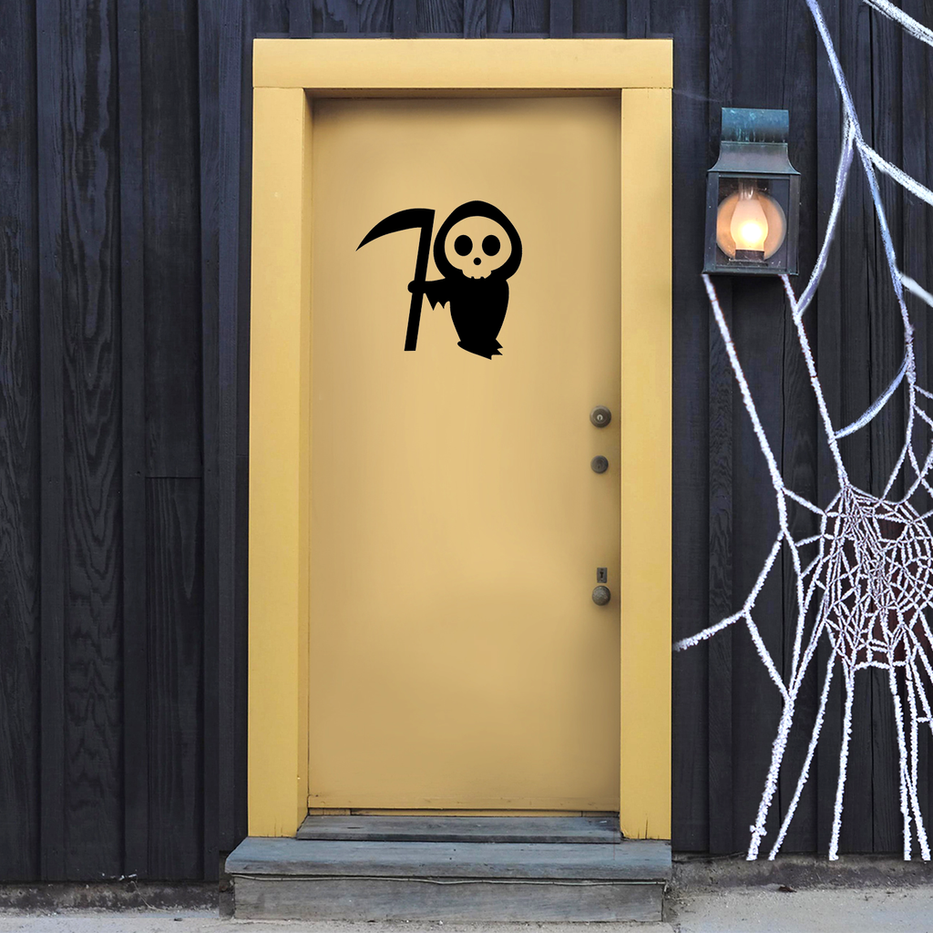 Vinyl Wall Art Decal - Cute Little Grim Reaper - 22" x 23" - Spooky Halloween Season Decoration Sticker - Trendy Indoor Outdoor Wall Door Window Living Room Office Decor 660078120026