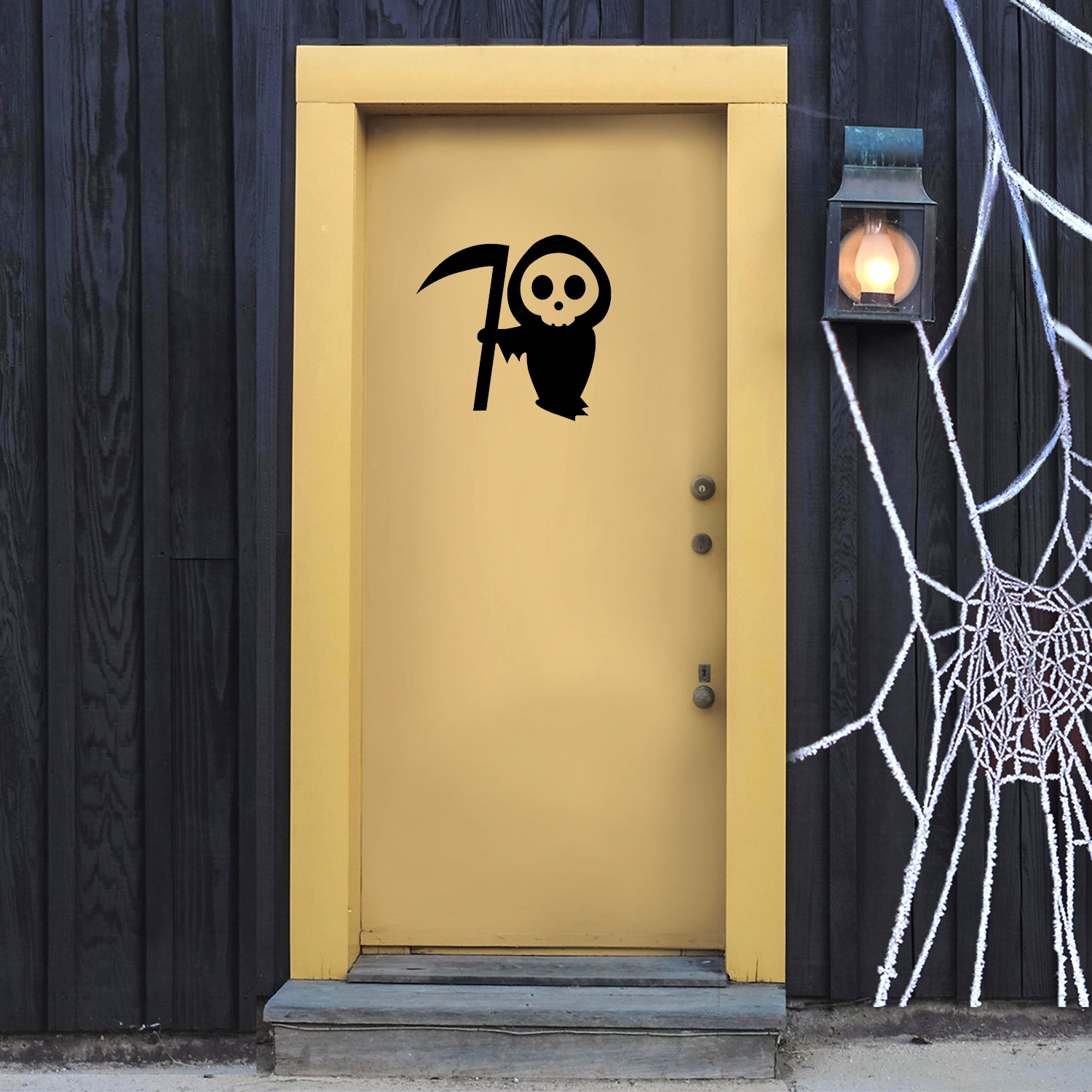This Halloween inspired Cute Little Grim Reaper wall art decal is the perfect touch for both indoor and outdoor decoration. It's a vinyl sticker that is easy to put on almost any smooth surface and really brings a room together adding the perfect touch of decoration. This vinyl decal is perfect for Halloween season in the October month. Our modern decals don't just brighten up the room, but brighten up the day. Using top of the line vinyl across all of our production allows us to be the leaders in quality and design.