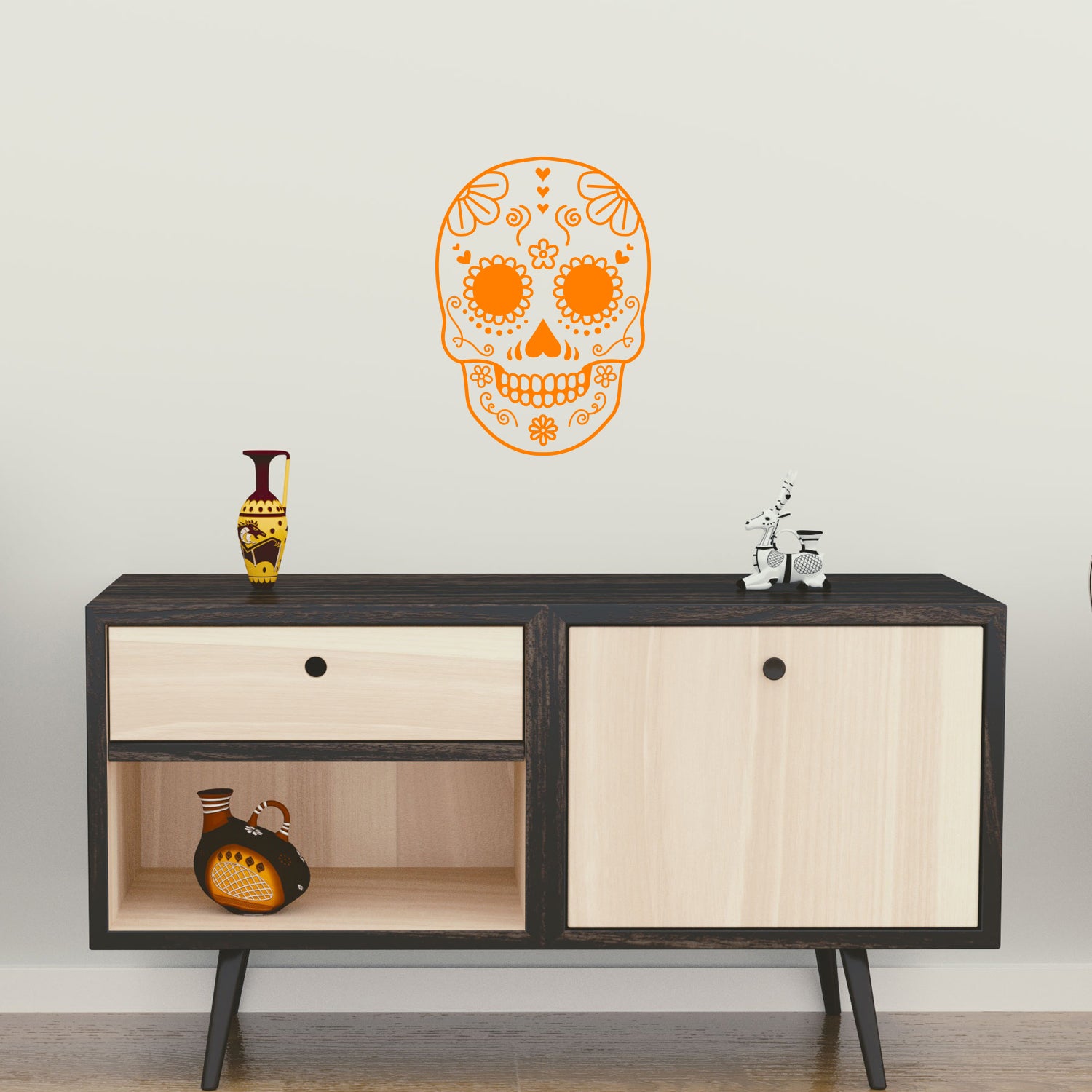 Vinyl Wall Art Decal - Day Of The Dead Skull - 21" x 15" - Sugar Skull Mexican Holiday Seasonal Sticker - Kids Teens Adults Indoor Outdoor Wall Door Window Living Room Office Decor (21" x 15", Orange) 660078122488