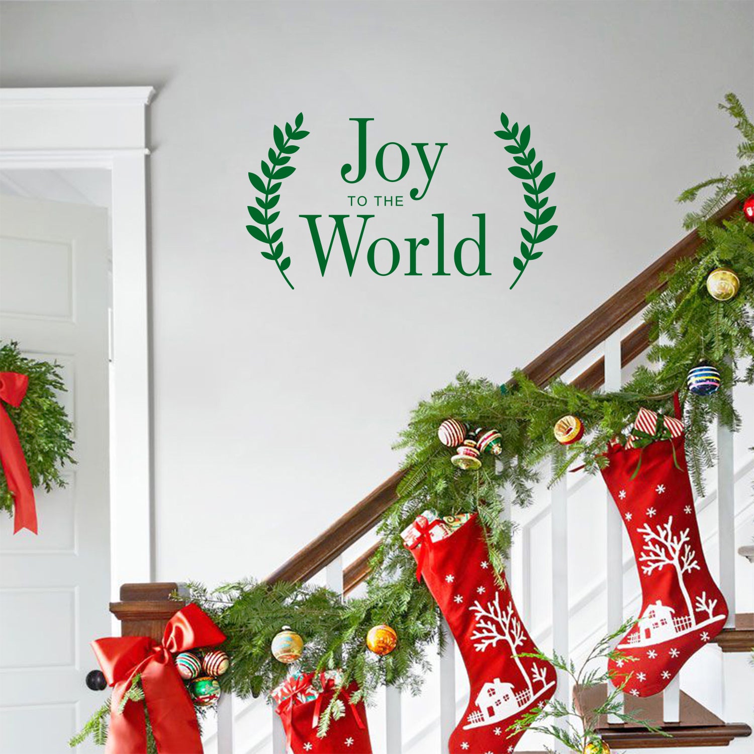 Vinyl Wall Art Decal - Joy" to The World - 13" x 23" - Christmas Seasonal Holiday Winter Decoration Sticker - Indoor Outdoor Home Office Wall Door Window Bedroom Workplace Decals (13" x 23", Green) 660078127360