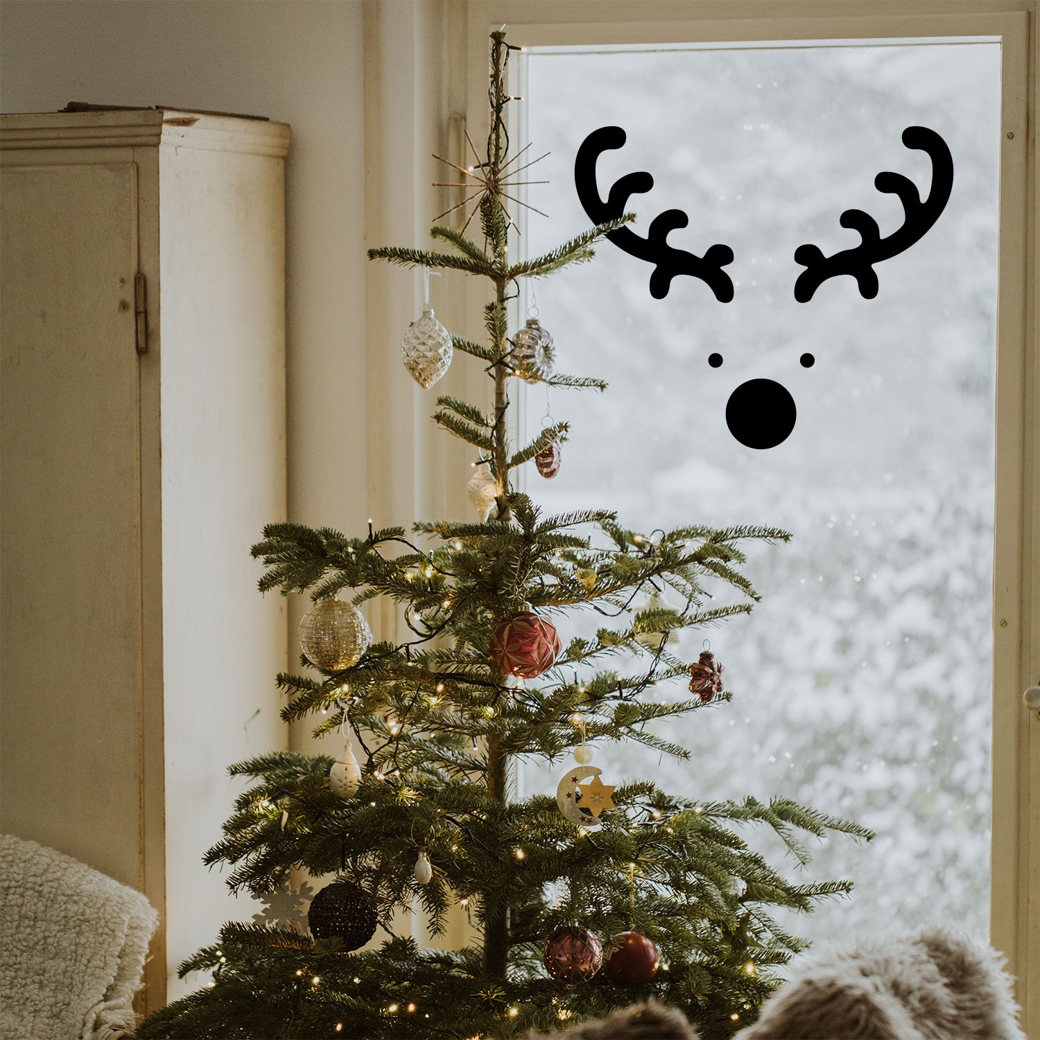 Vinyl Wall Art Decal - Reindeer Face - 20" x 23" - Christmas Seasonal Holiday Decoration Sticker - Indoor Outdoor Window Home Living Room Bedroom Apartment Office Door Decor (20" x 23", Black) 660078127612