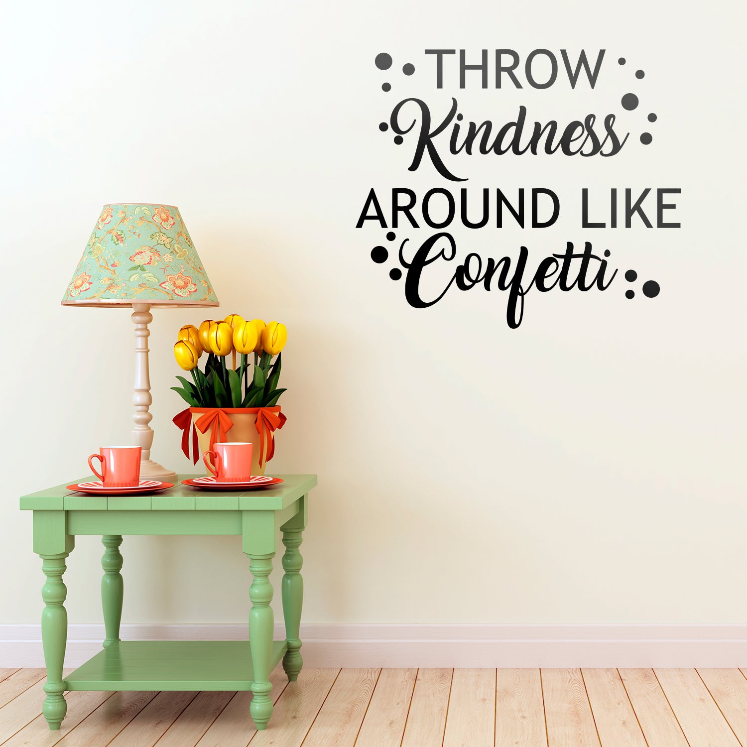Vinyl Wall Art Decal - Throw Kindness Around Like Confetti - 23" x 26" - Positive Bedroom Office Living Room Workplace Decoration - Motivational Wall Home Apartment Decor Sticker (23" x 26", Black) 660078129814