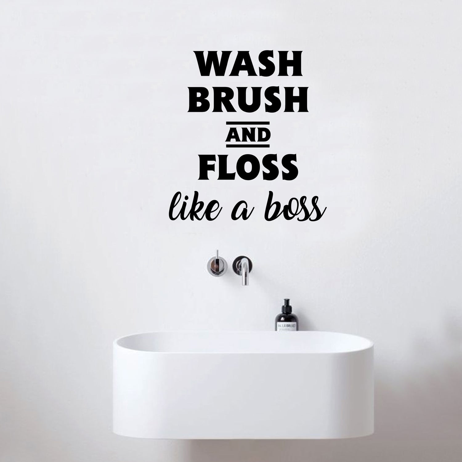 This modern "Wash Brush And Floss Like A Boss" life quotes wall art decal is trendy and the perfect touch for both indoor and outdoor decoration. It's a vinyl sticker that is easy to put on almost any smooth surface and really brings a room together adding the perfect touch of decoration. This vinyl decal quote is perfect to put in a bathroom for your home or in a guest bathroom. Our modern quotes don't just brighten up the room, but brighten up the day. Using top of the line vinyl across all of our production allows us to be the leaders in quality and design.
