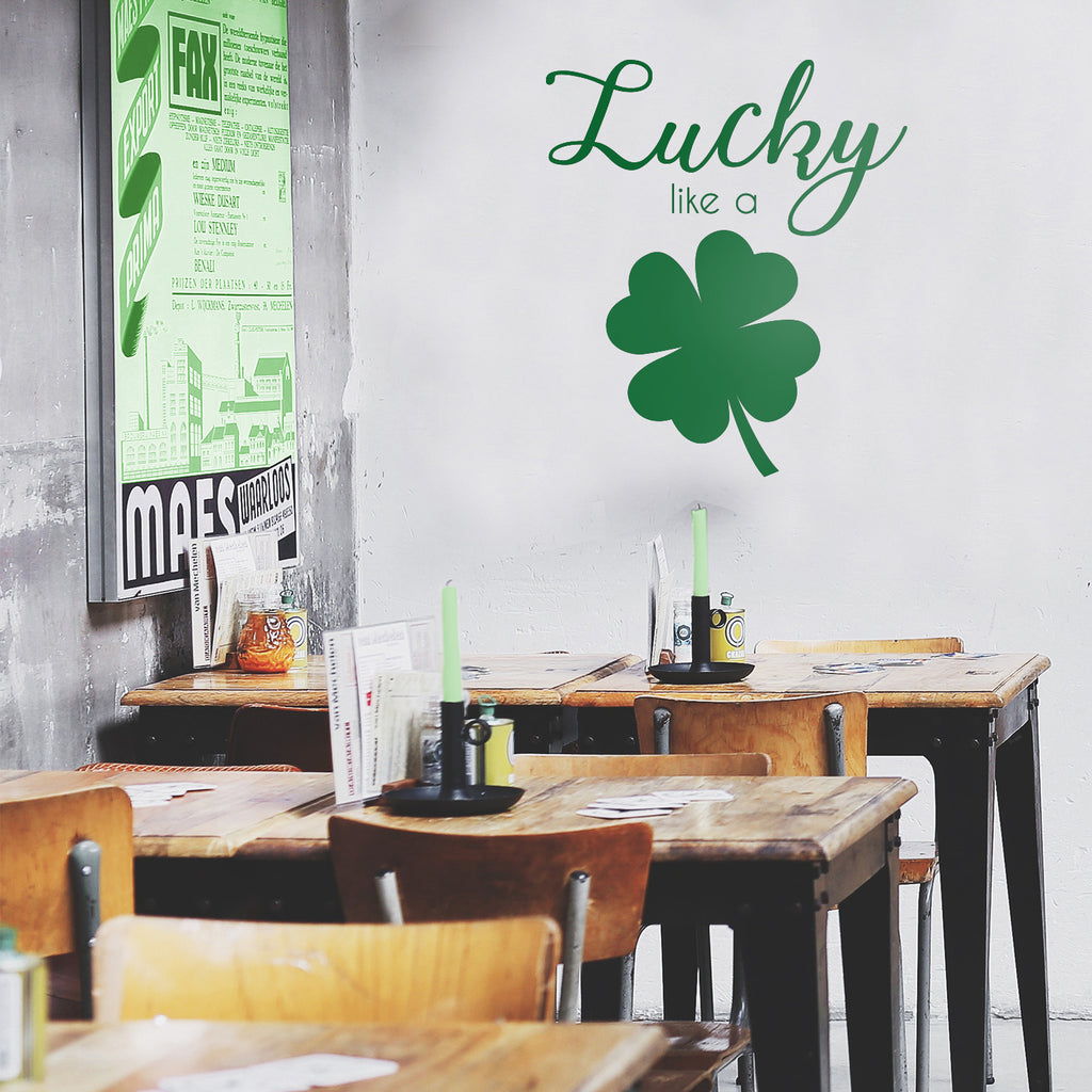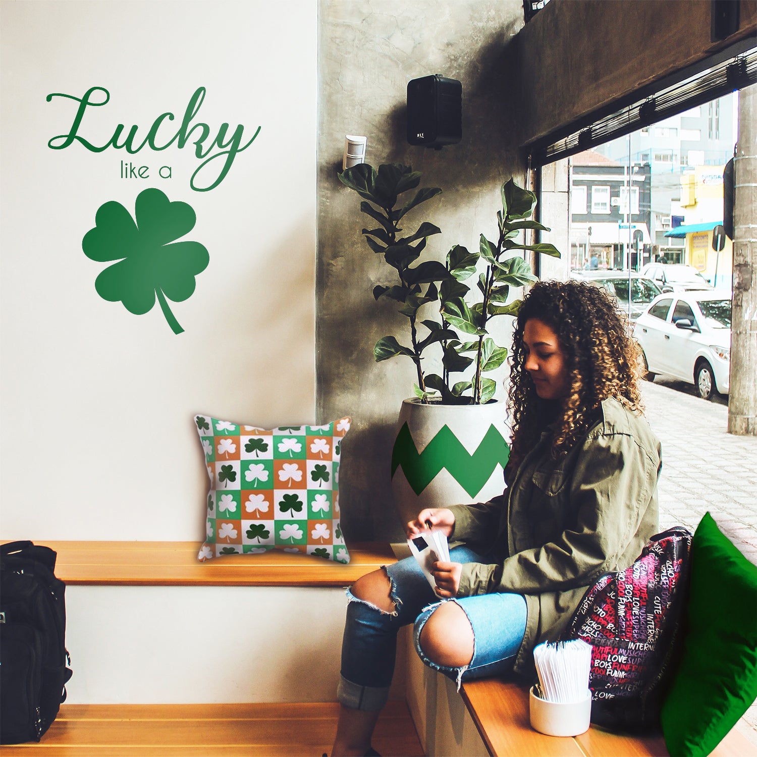 St Patrick's Day Vinyl Wall Art Decal - Lucky Like A Four Leaf Clover - 20" x 23" - St Patty's Holiday Coffee Shop Home Living Room Bedroom Office Work Apartment Decor Sticker